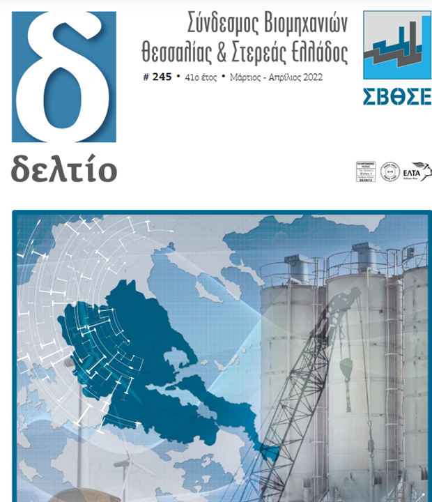 9 Ιουνίου, 2022 - In Γενική Πληροφόρηση By ΒΑΣΙΛΕΙΟΣ ΥΦΑΝΤΗΣ Comment off ΔΙΜΗΝΙΑΙΟ ΠΕΡΙΟΔΙΚΟ – «ΔΕΛΤΙΟ» – ΣΒΘΣΕ – ΤΕΥΧΟΣ 245 – Μάρτιος – Απρίλιος 2022. Πηγή: ΣΒΘΣΕ – ΣΥΝΔΕΣΜΟΣ ΒΙΟΜΗΧΑΝΙΩΝ ΘΕΣΣΑΛΙΑΣ & ΣΤΕΡΕΑΣ ΕΛΛΑΔΟΣ Previous Metalogues 2022: Ανοιχτή πρόσκληση συμμετοχής. Next Περιοδική έκδοση του Γραφείου ΟΕΥ Μόσχας με ειδήσεις οικονομικού και επιχειρηματικού ενδιαφέροντος από ΜΜΕ της Ρωσικής Ομοσπονδίας (Μάιος 2022).